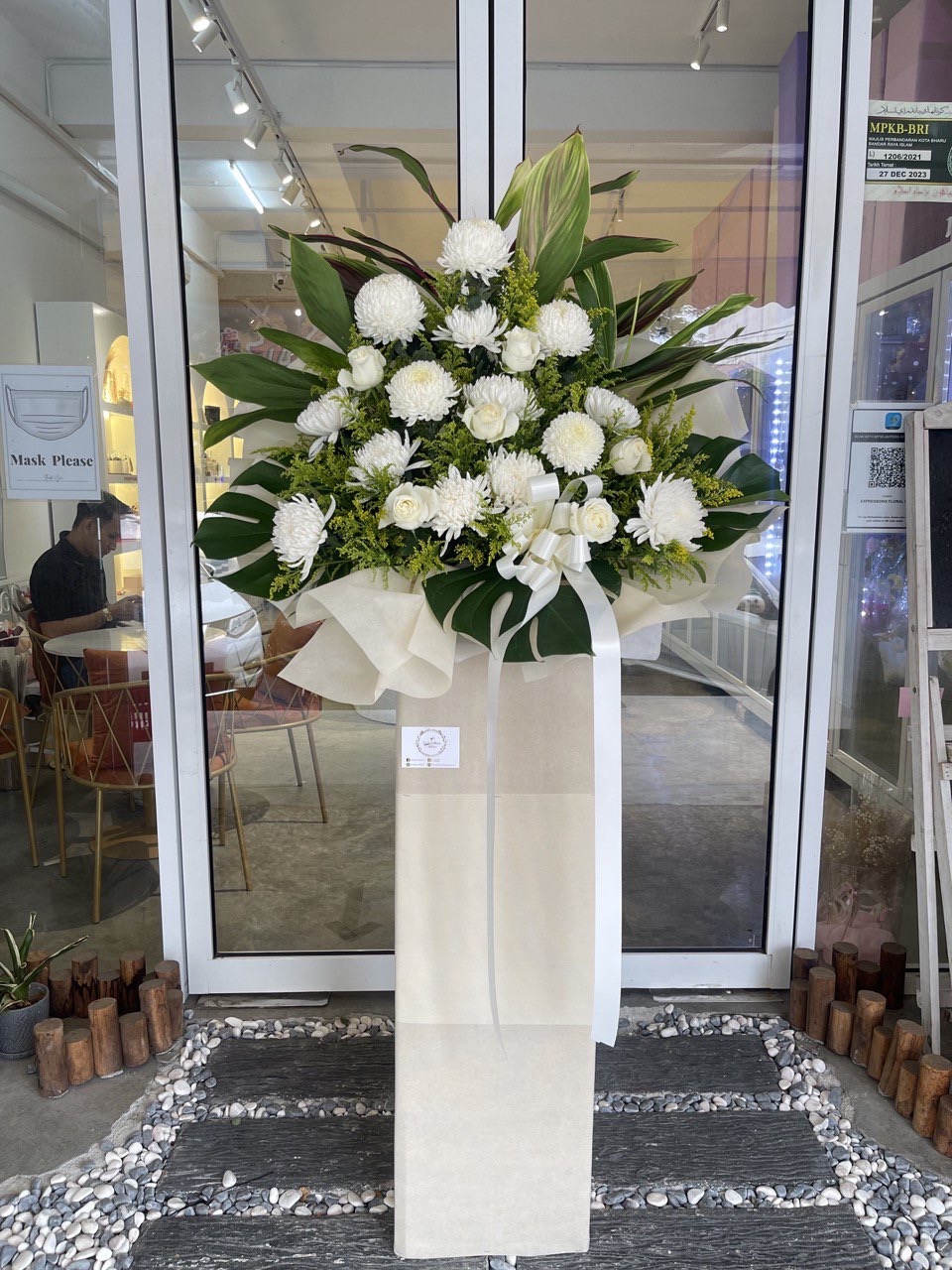 A well combinations of White Incurves, White Net Mum, White Roses & Chrysanthemums represent the enduring memory of a loved one. They offer unwavering support during times of sorrow.
