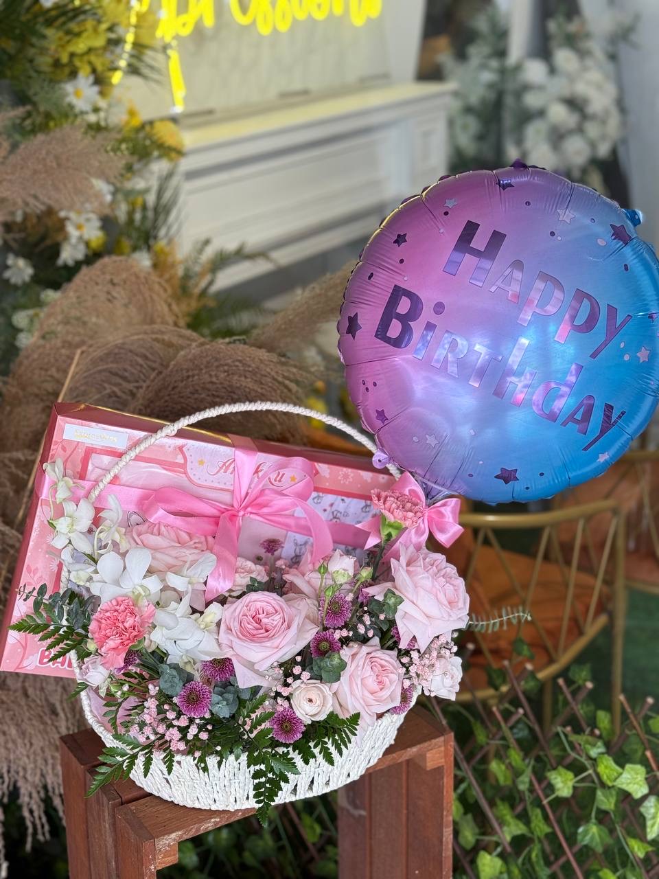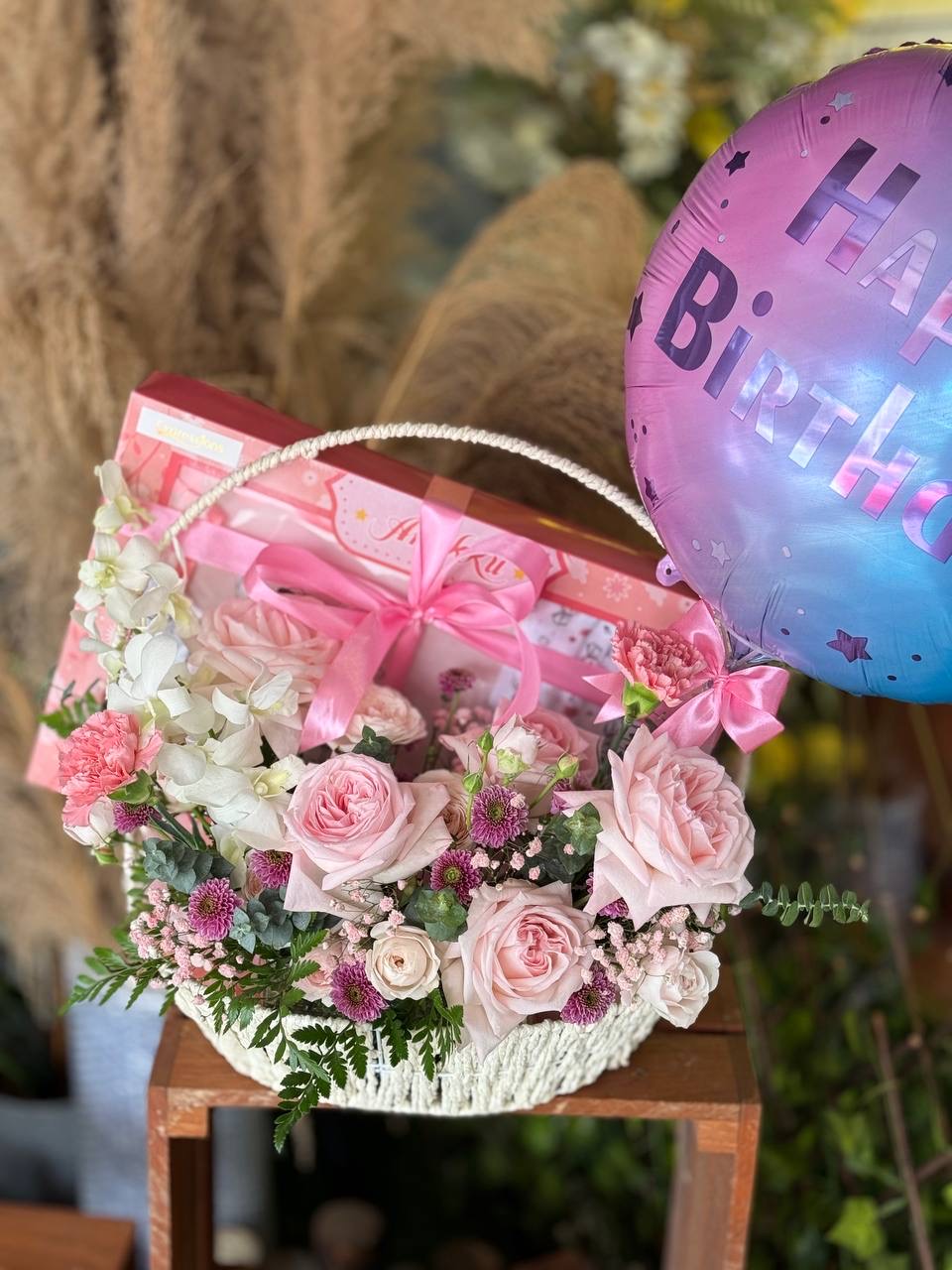 The new baby has finally arrived but the journey has just begun for the whole family. Here’s a thoughtful gift that’s not only pretty to look at but will also prove to be useful in the many long nights to come. A beautiful flower arrangement accompanied by our most essential baby products!