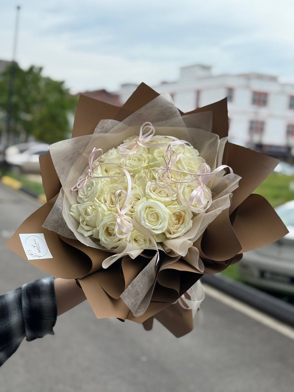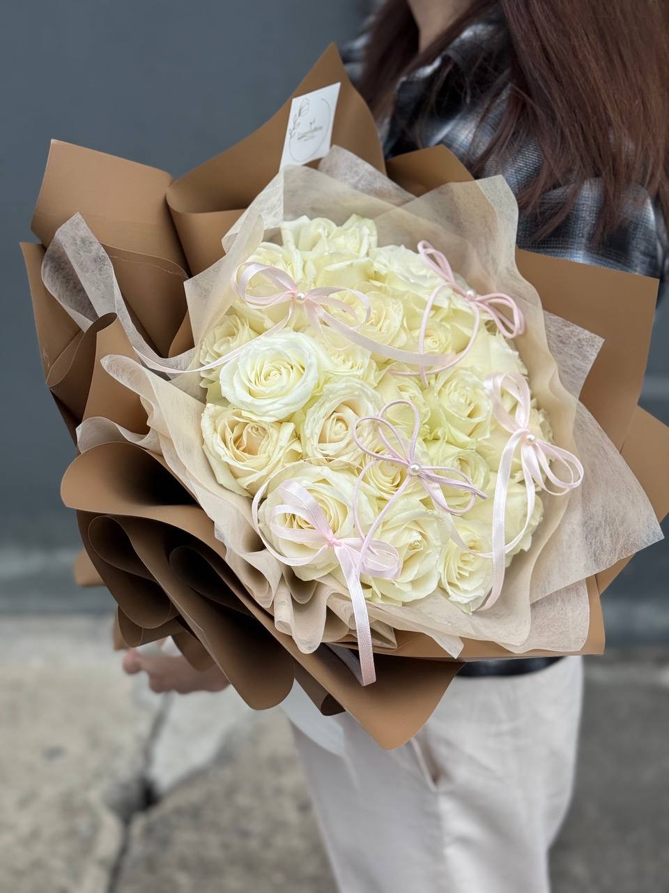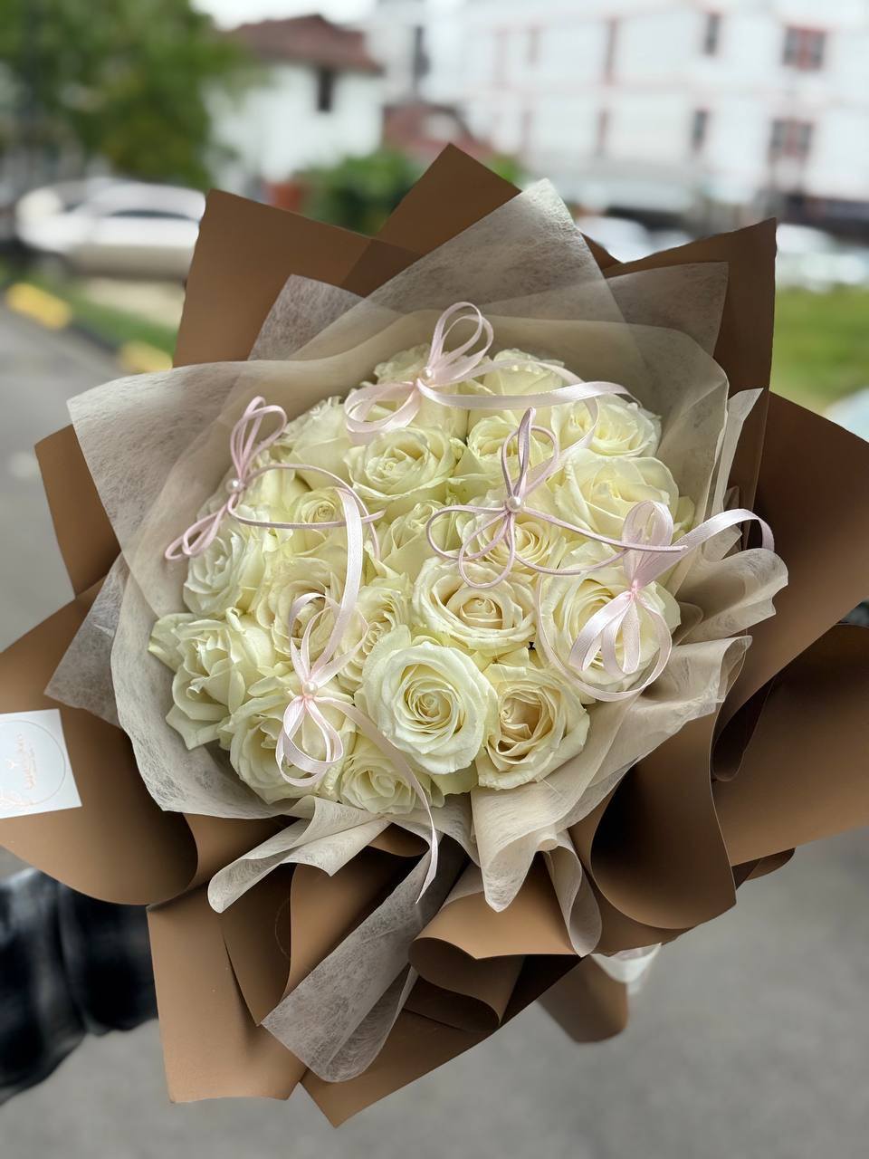 This The White Prestige rose bouquet is so flawless, it’s like gifting a slice of perfection. Perfect for that friend who’s already too real for reality TV.